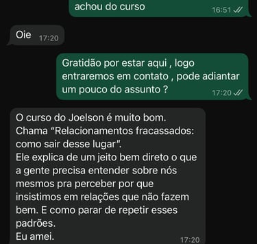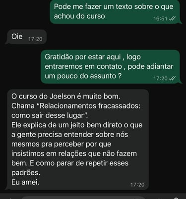 Detalhe: Este curso foi criado para te ajudar a identificar, compreender e romper os padrões que sabotam sua vida amorosa — de forma clara, prática e profunda.